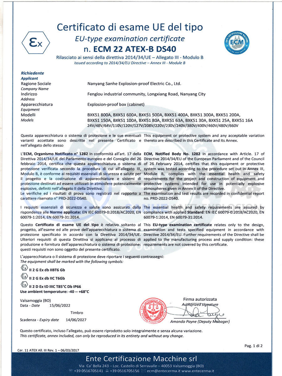 防爆控制箱ATEX認(rèn)證