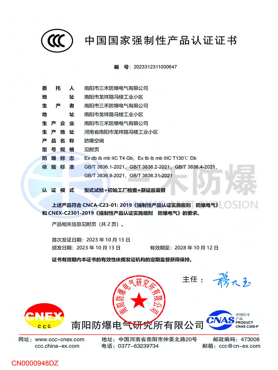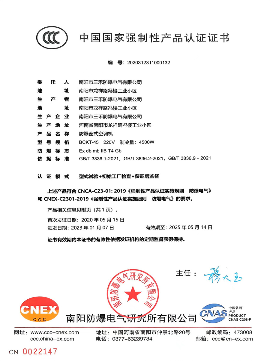 防爆空調(diào)CCC證