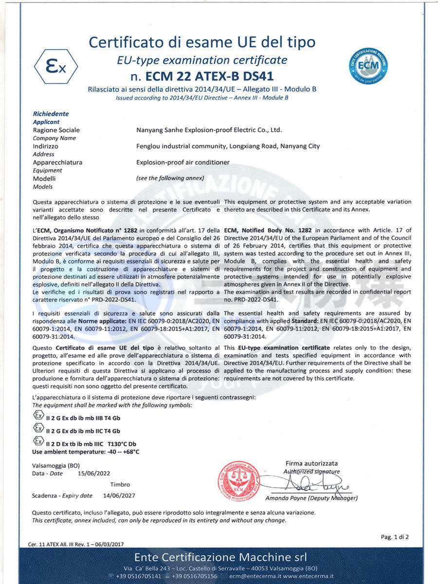 防爆空調(diào)ATEX認(rèn)證