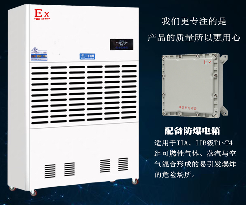 3、防爆除濕機(jī)經(jīng)國-家防爆電氣產(chǎn)品質(zhì)量監(jiān)督檢查測試中心檢測合格,取得了防爆合格證。